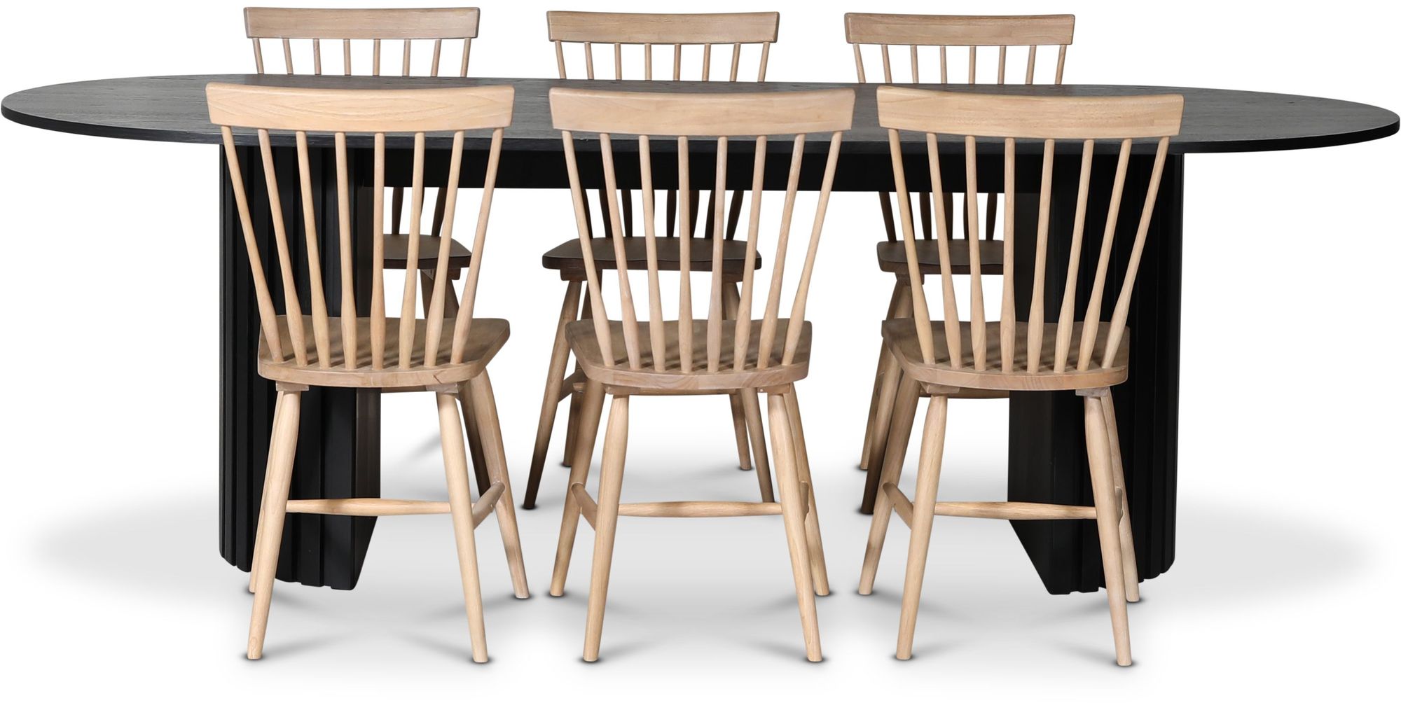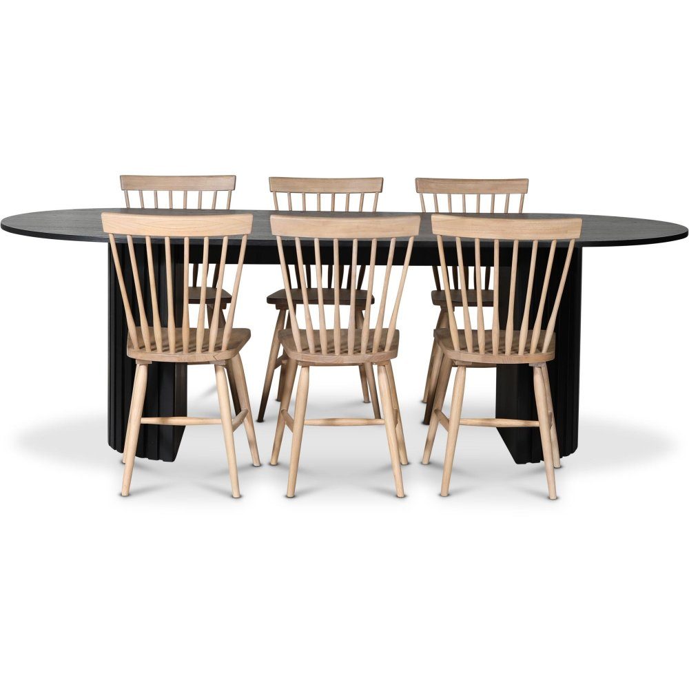 PiPi spisegruppe 230 cm inkl. 6 stk. Tärnö whitewash pinnestoler - Svartbeiset tre + Møbelføtter