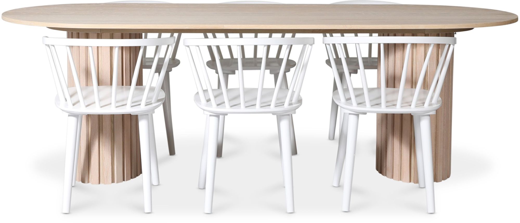 PiPi spisegruppe 240 cm inkl. 6 stk. Dalsland hvite karmstoler - Whitewash + Stolpute