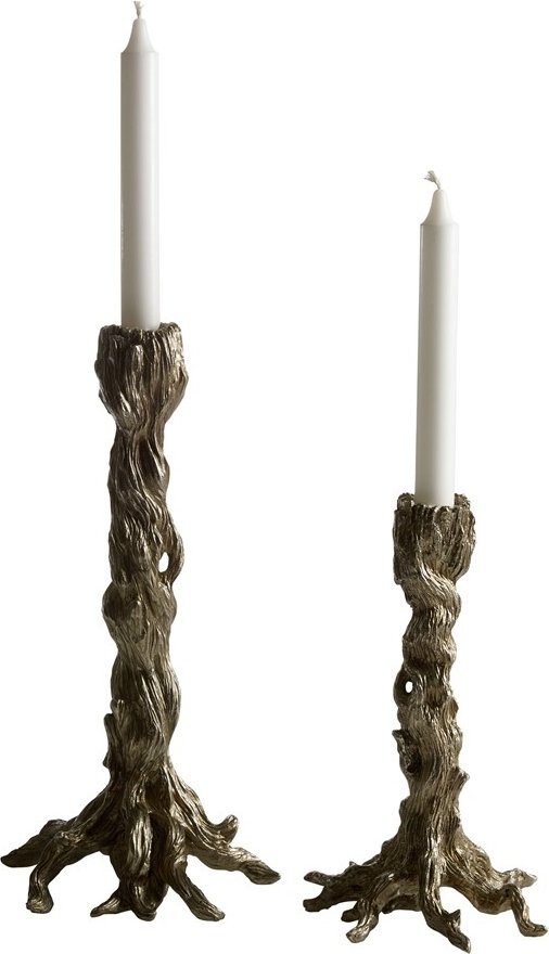 Fantastisk lysestake formet som en stamme med røtter som føtter. Med en fin antikk sølvlook.