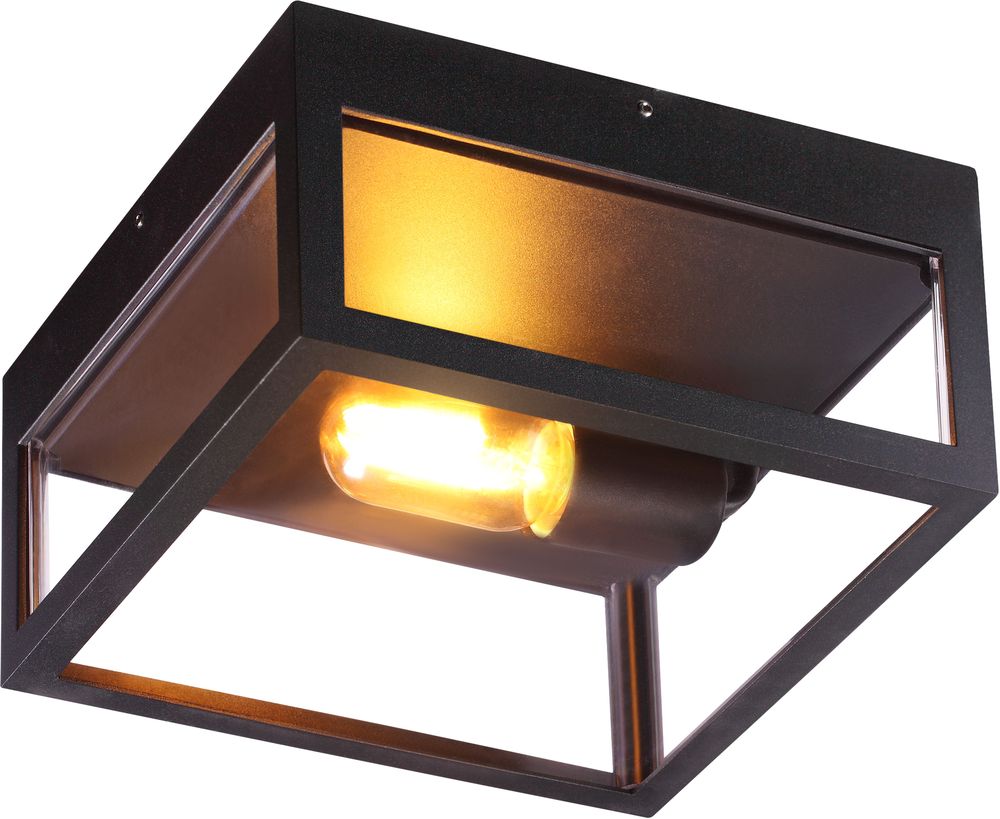 Utendørs plafond i svart metall og plast. Monteres enkelt på husveggen eller taket.