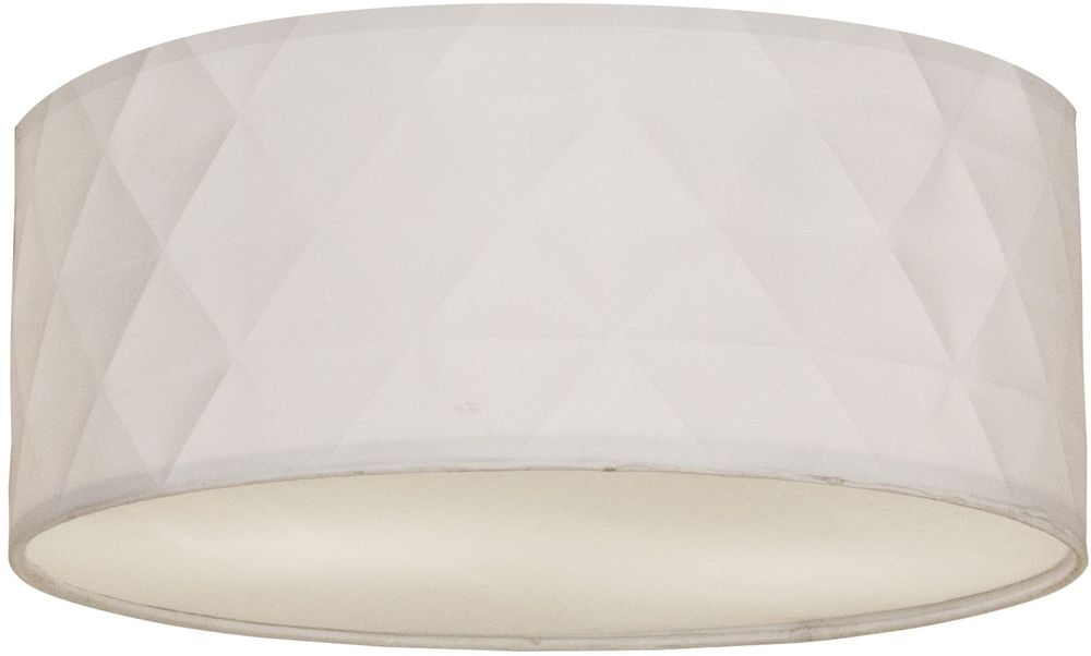Taklampe i metall og hvitt tekstil. Enkel å montere i taket.