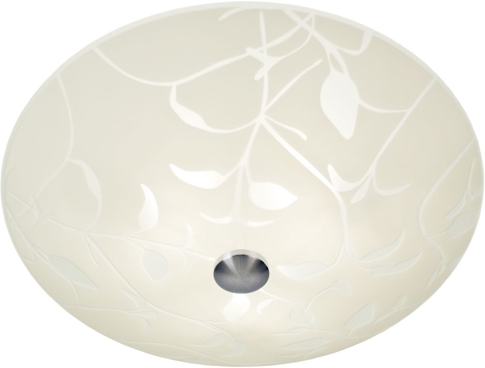 Taklampe i metall og hvitt glass med mønster. Monteres enkelt i taket.