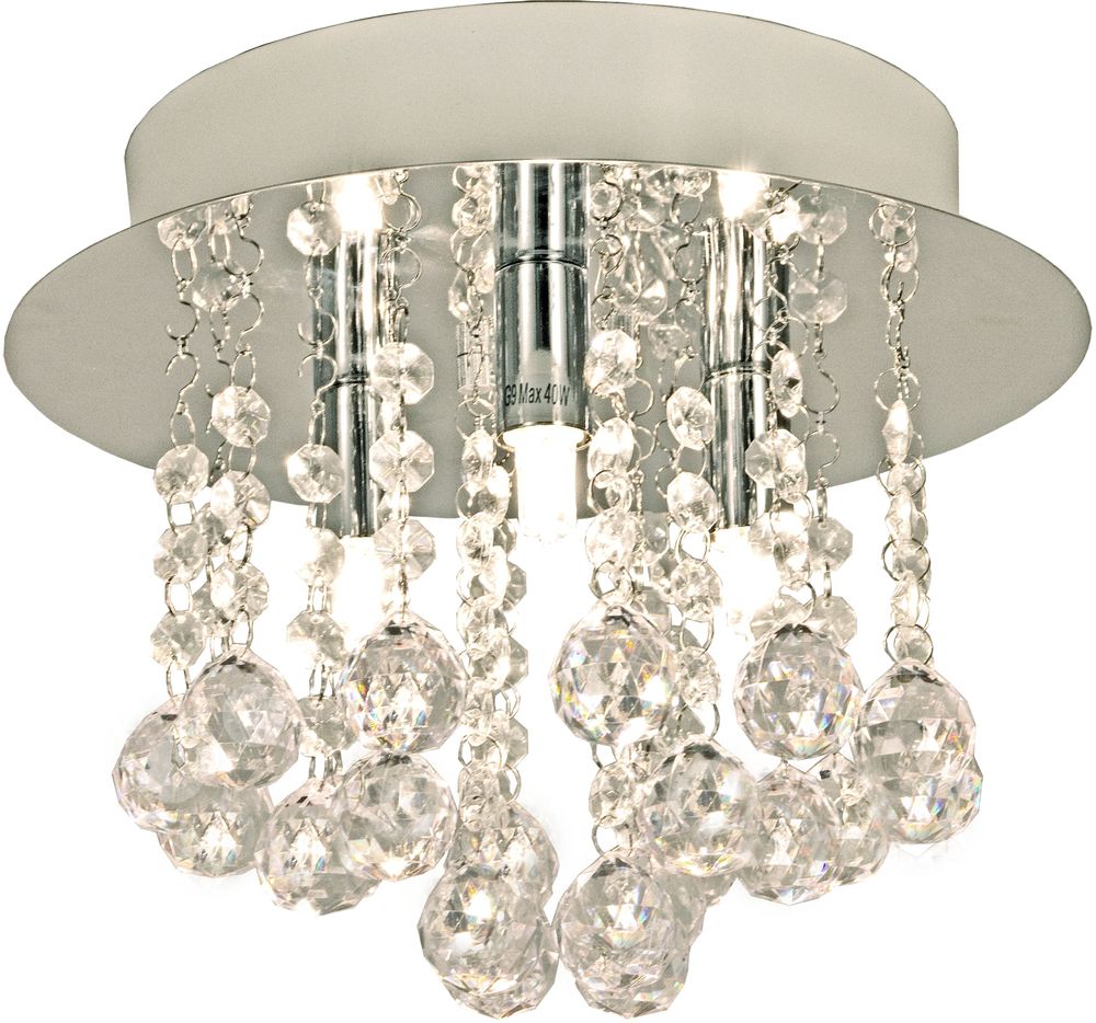 Taklampe i metall med kromdesign og krystalldetaljer i akryl. Enkel montering i taket.