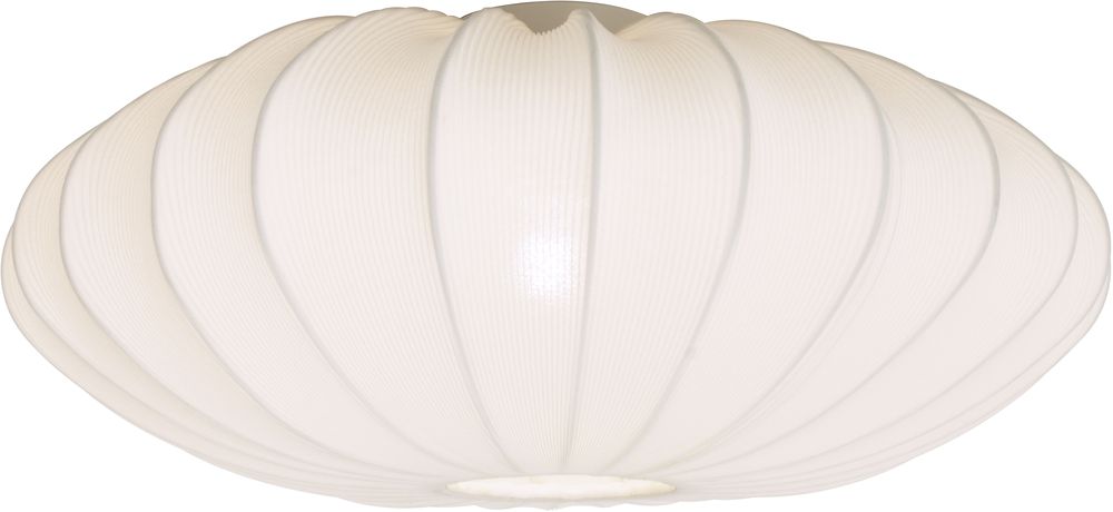 Taklampe i metall og hvitt tekstil. Enkel å montere i taket.