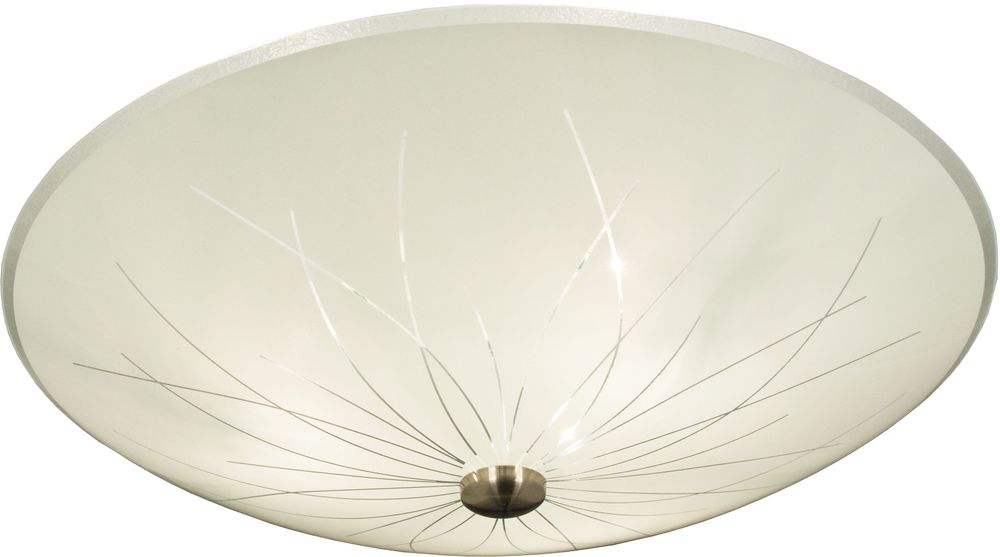 Taklampe i metall og hvitt glass med mønster. Monteres enkelt i taket.