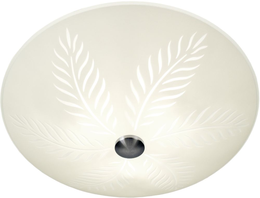 Taklampe i metall og hvitt glass med mønster. Monteres enkelt i taket.