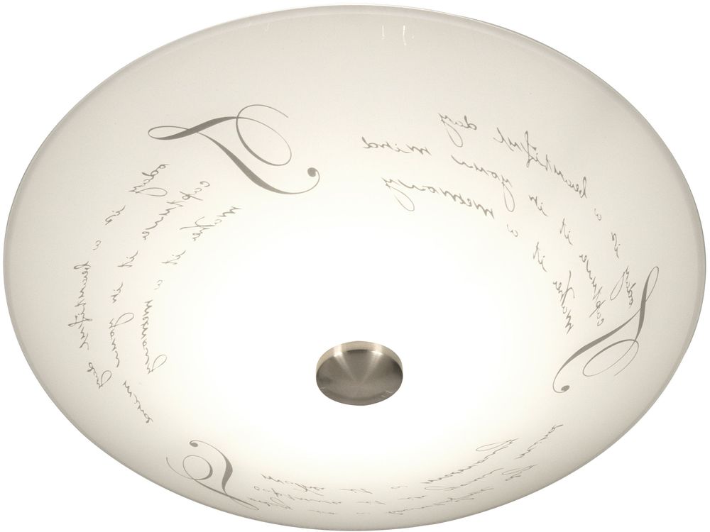 Taklampe i metall og hvitt glass med mønster. Monteres enkelt i taket.