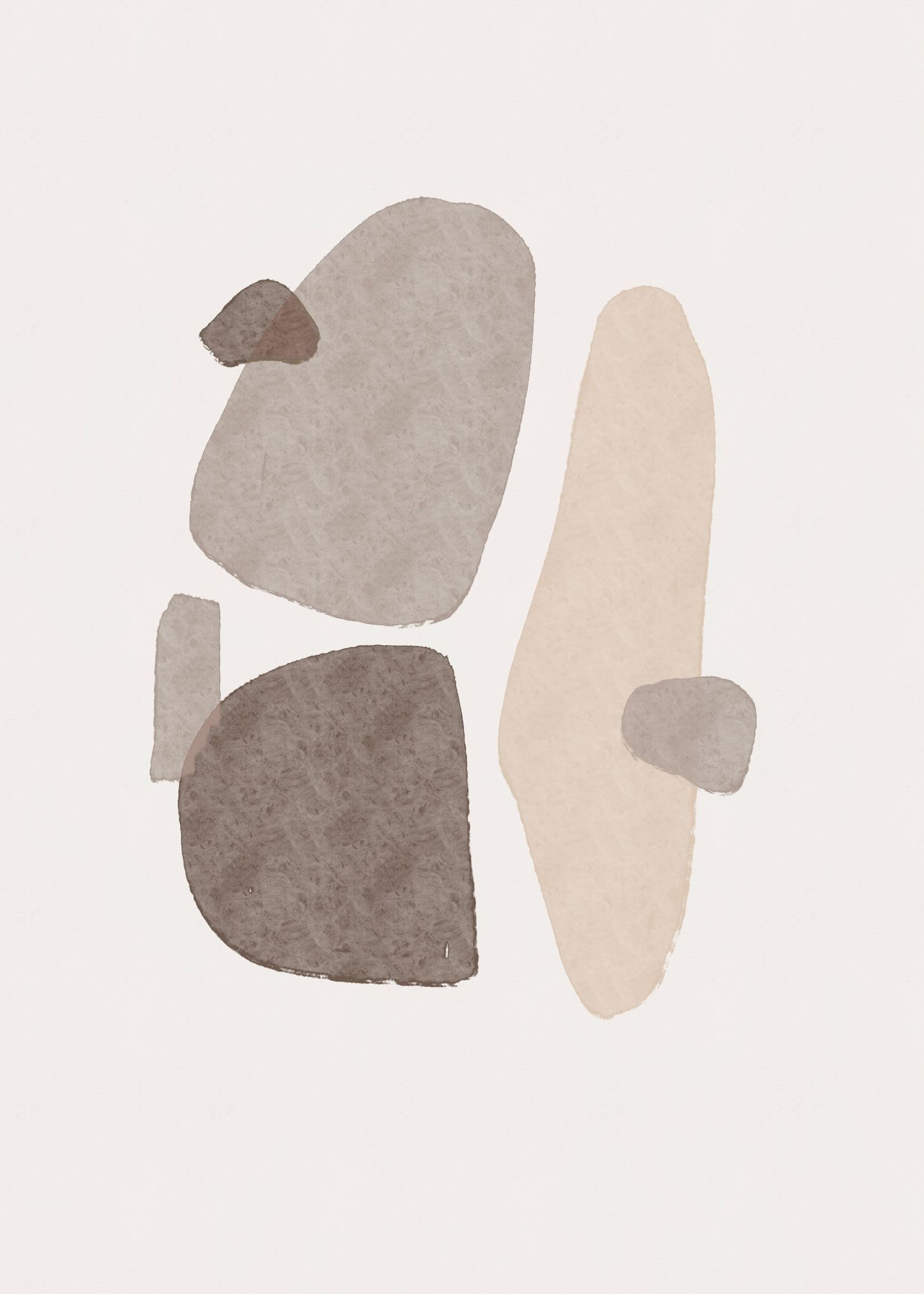 En illustrasjon av myke former i beige og brune nyanser med tekstur mot en hvit bakgrunn. De malte strukturene i trykket gir et moderne preg som passer perfekt i stuen eller på kjøkkenet!