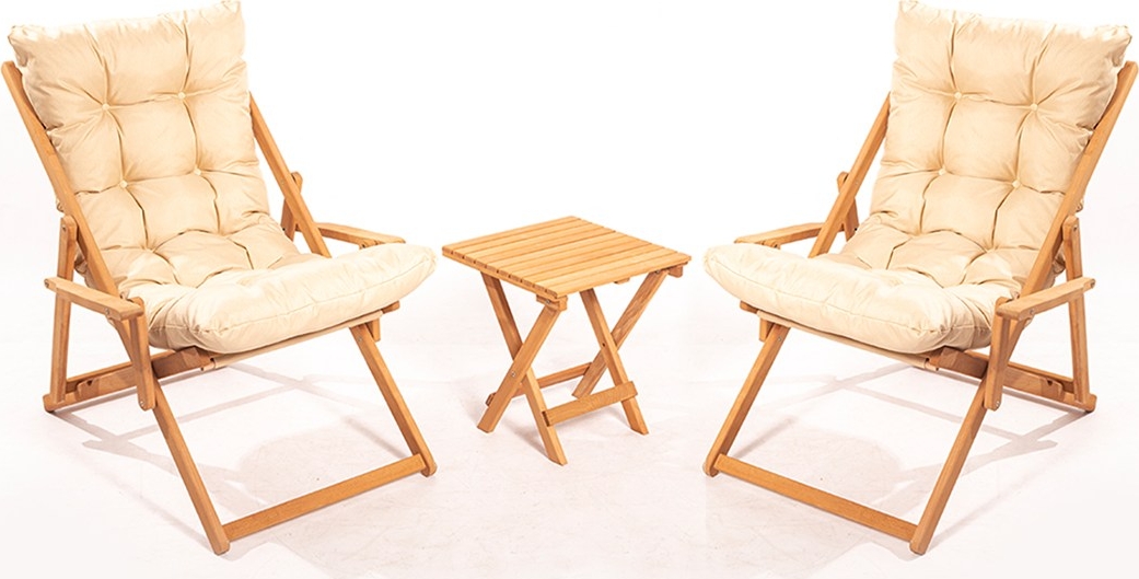 Loungegruppe laget av bøketre med 2 stoler og bord.