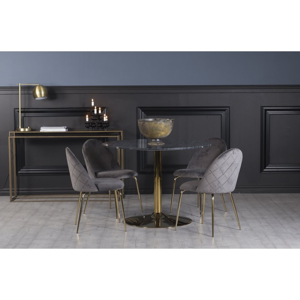 Plaza spisegruppe, marmorbord med 4 st Plaza fløyelstoler - Grå/Messing