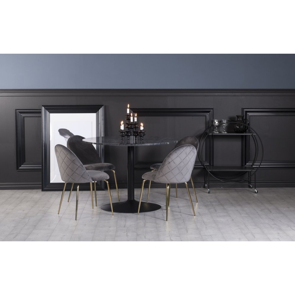 Plaza spisegruppe, marmorbord med 4 st Plaza fløyelstoler - Grå/Svart