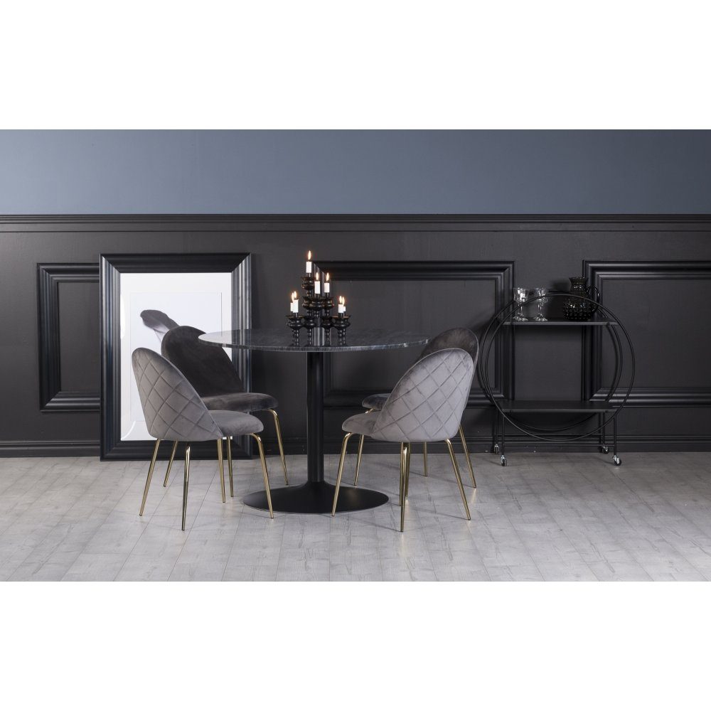 Plaza spisegruppe, marmorbord med 4 st Plaza fløyelstoler - Grå/Svart: