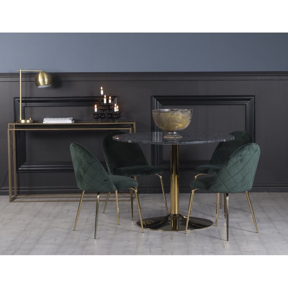 Plaza spisegruppe, marmorbord med 4 st Plaza fløyelstoler - Grønn/Grå/Messing