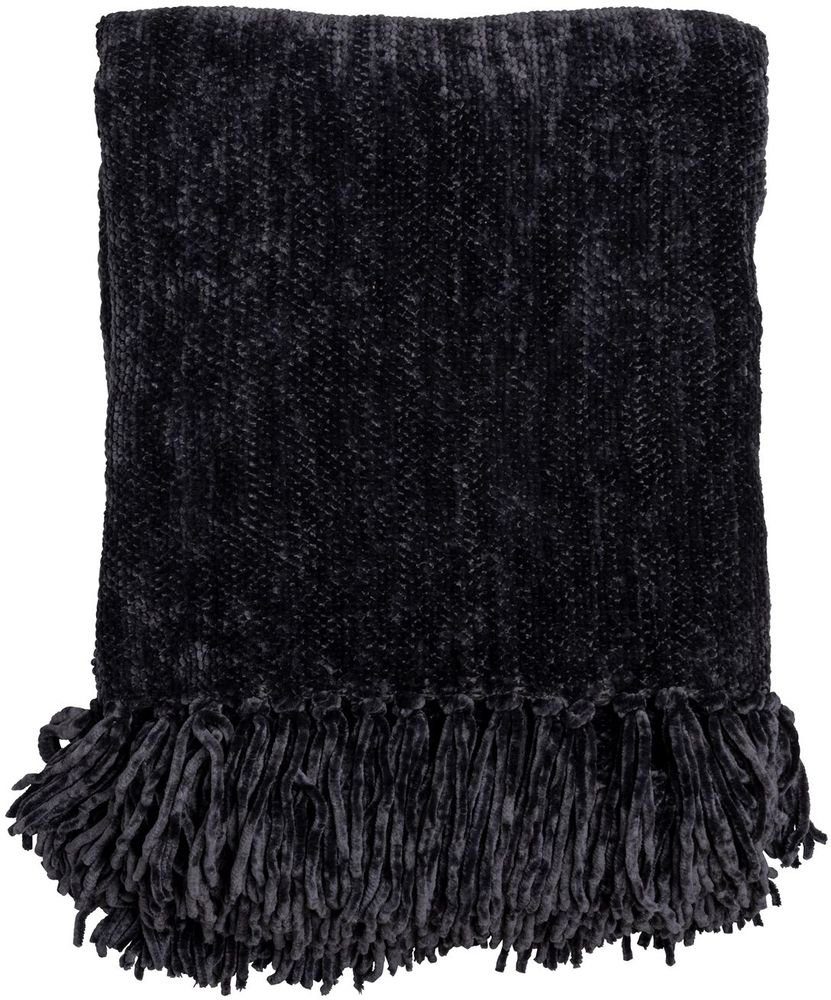 Mykt chenillepledd med frynser.