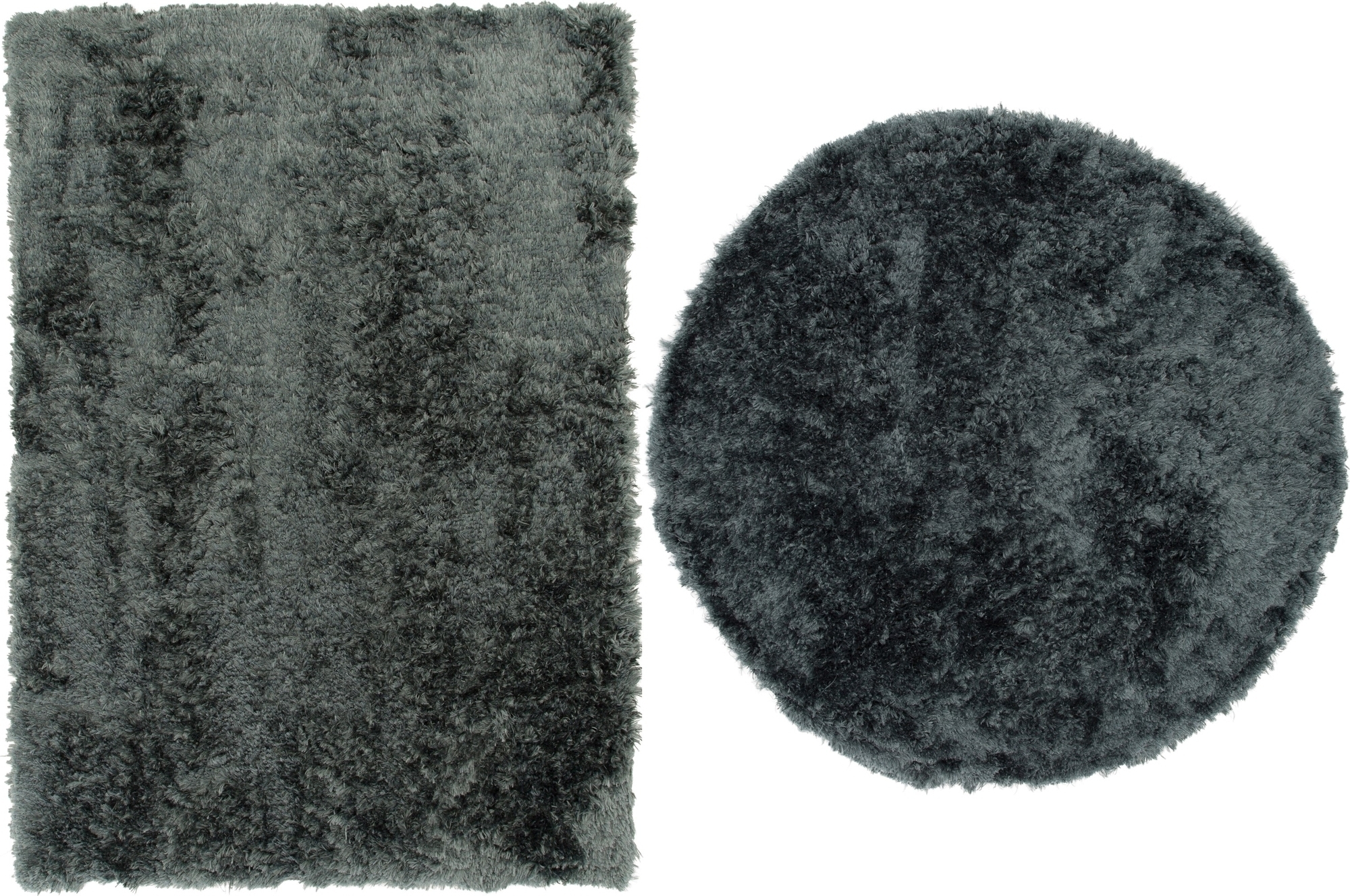 Fluffy mørkegrønt polyesterteppe med silkeaktig følelse. Glattvevd med høy og tett lugg.