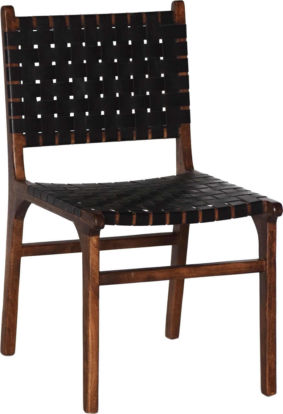 Retro stol med sete laget av svart skinn. Massiv treramme i valnøttdesign.