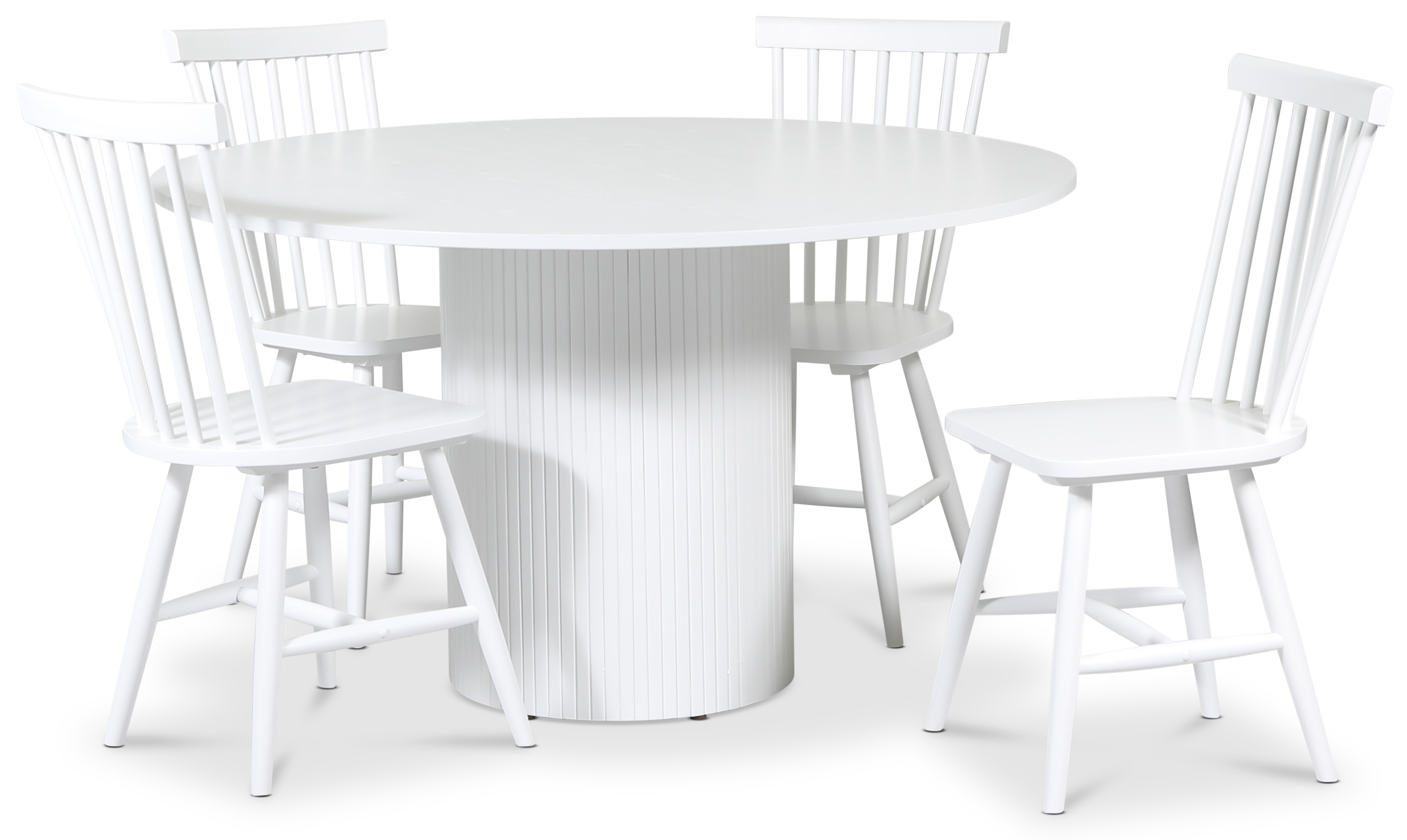 Pose spisegruppe: Bord Ø130 cm inkludert 4 stk Fårö pinnestoler - Hvitbeiset eik