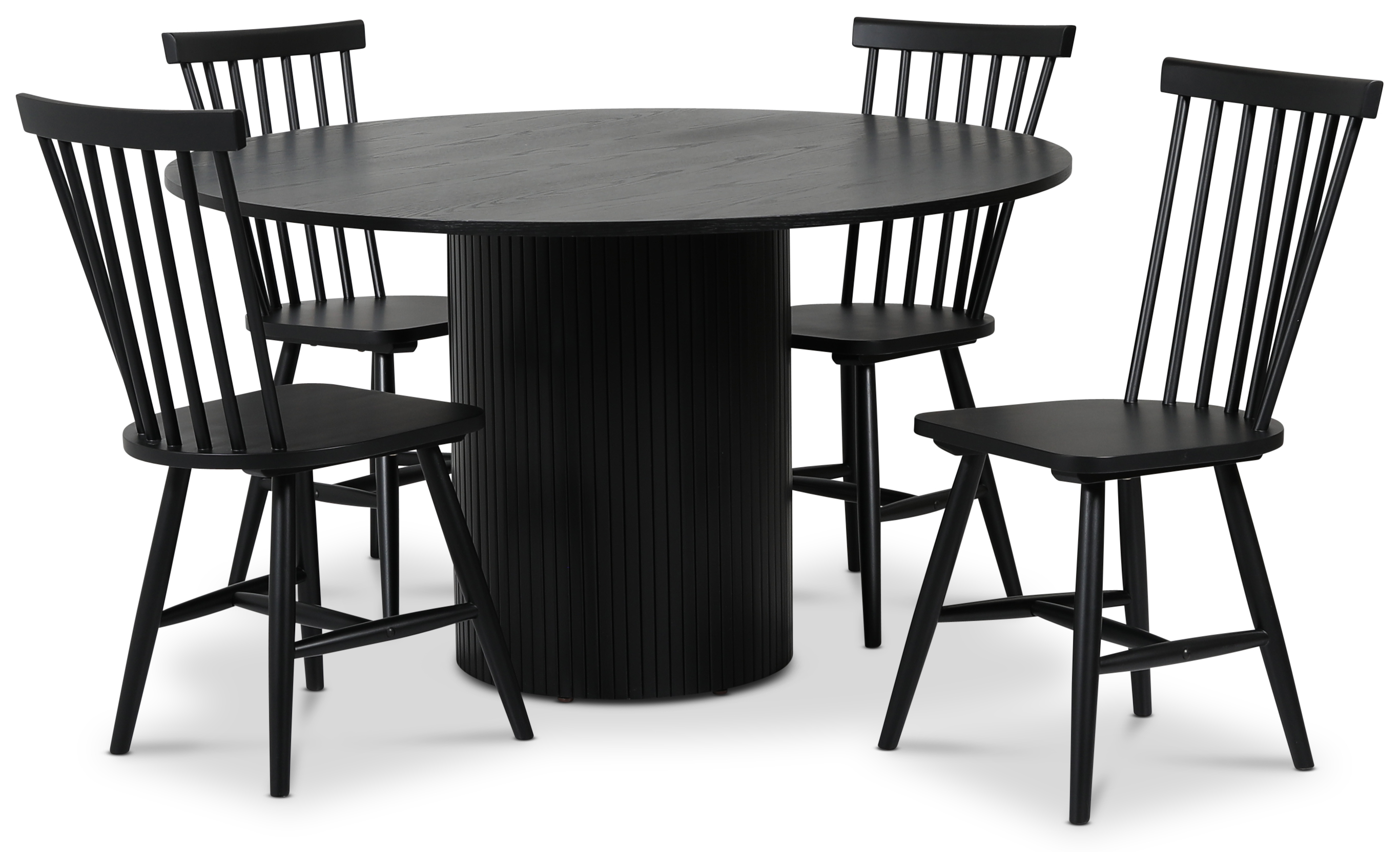Pose spisegruppe: Bord Ø130 cm inkludert 4 stk Fårö pinnestoler - Svart