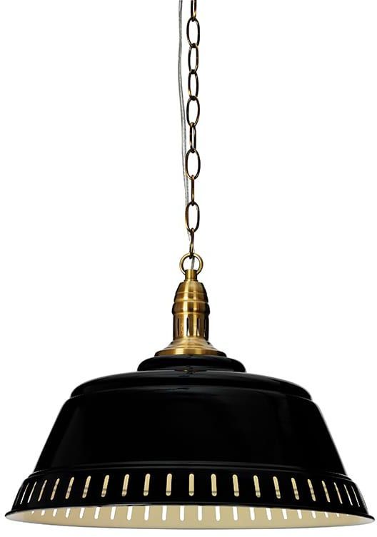 En pen taklampe med en retro design. Tilvirket i svart metall med oppheng i vintage messing.