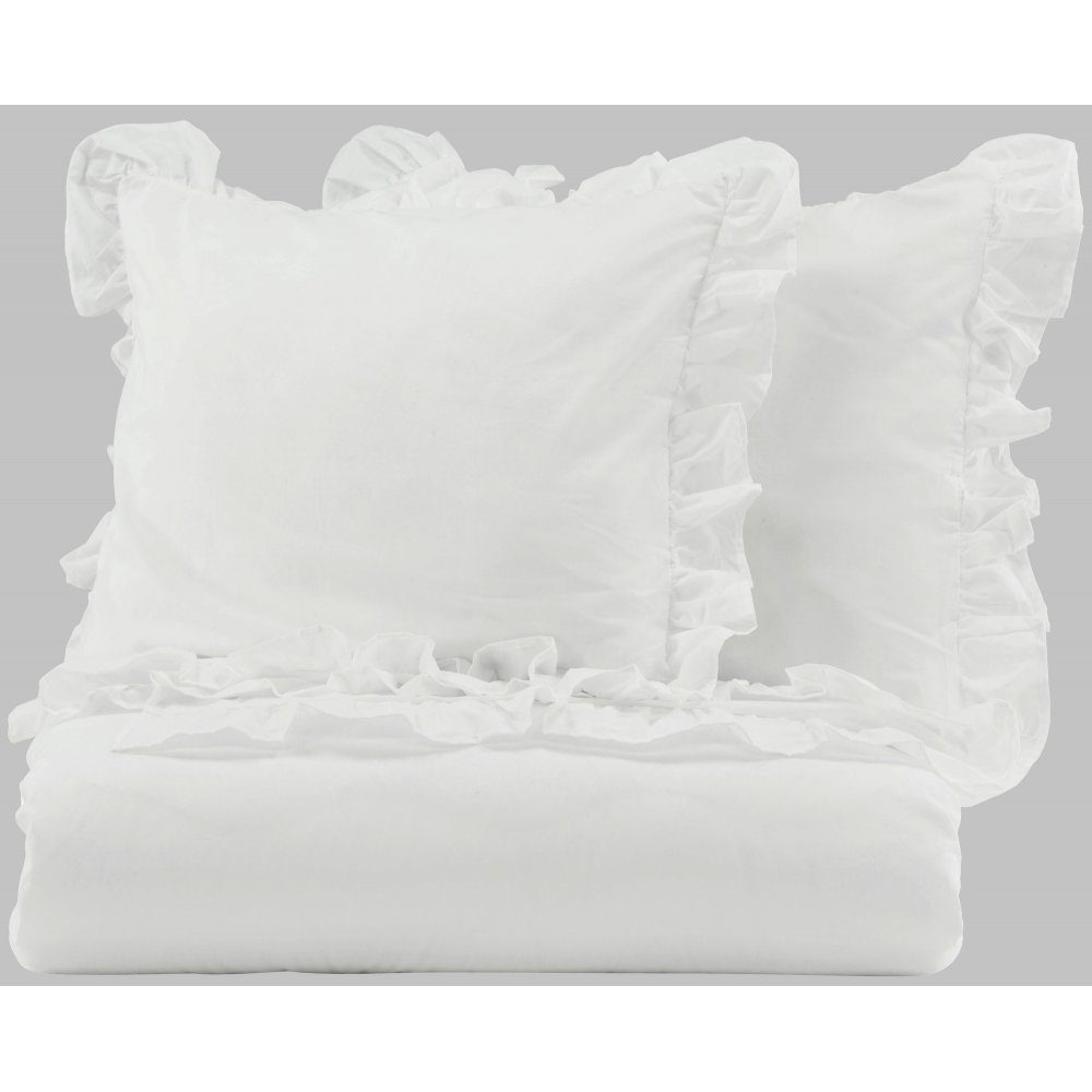 Dynetrekksett med en dekorativ volangkant. Laget av bomull for en behagelig og sval følelse mot kroppen.