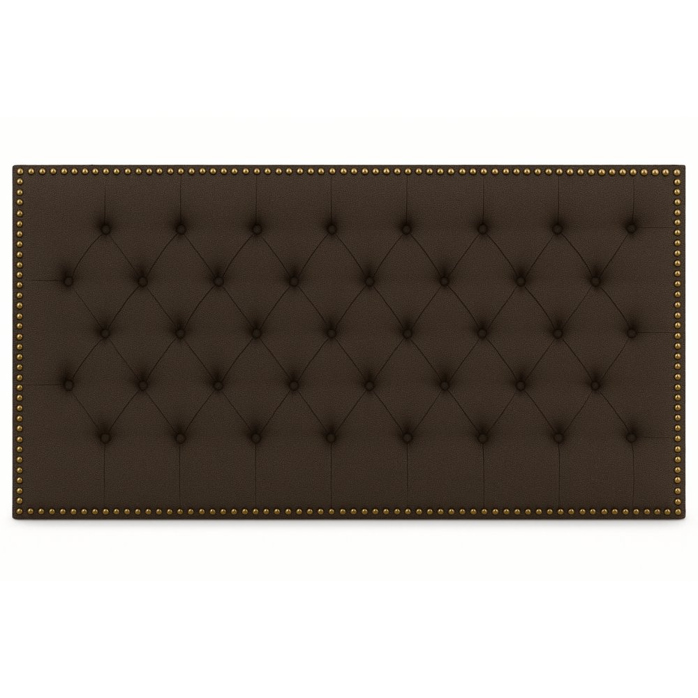 Princess-hodegavlen, med sine messingfargede nagler, rammer inn en pent pikset hodegjerde. Modellen er gulvstående og selges med tilbudet - valgfri polstring . Valget gir deg sjansen til å sette et skikkelig personlig preg på sengegavlen, som igjen gir herlig liv og farge til hele soverommet.