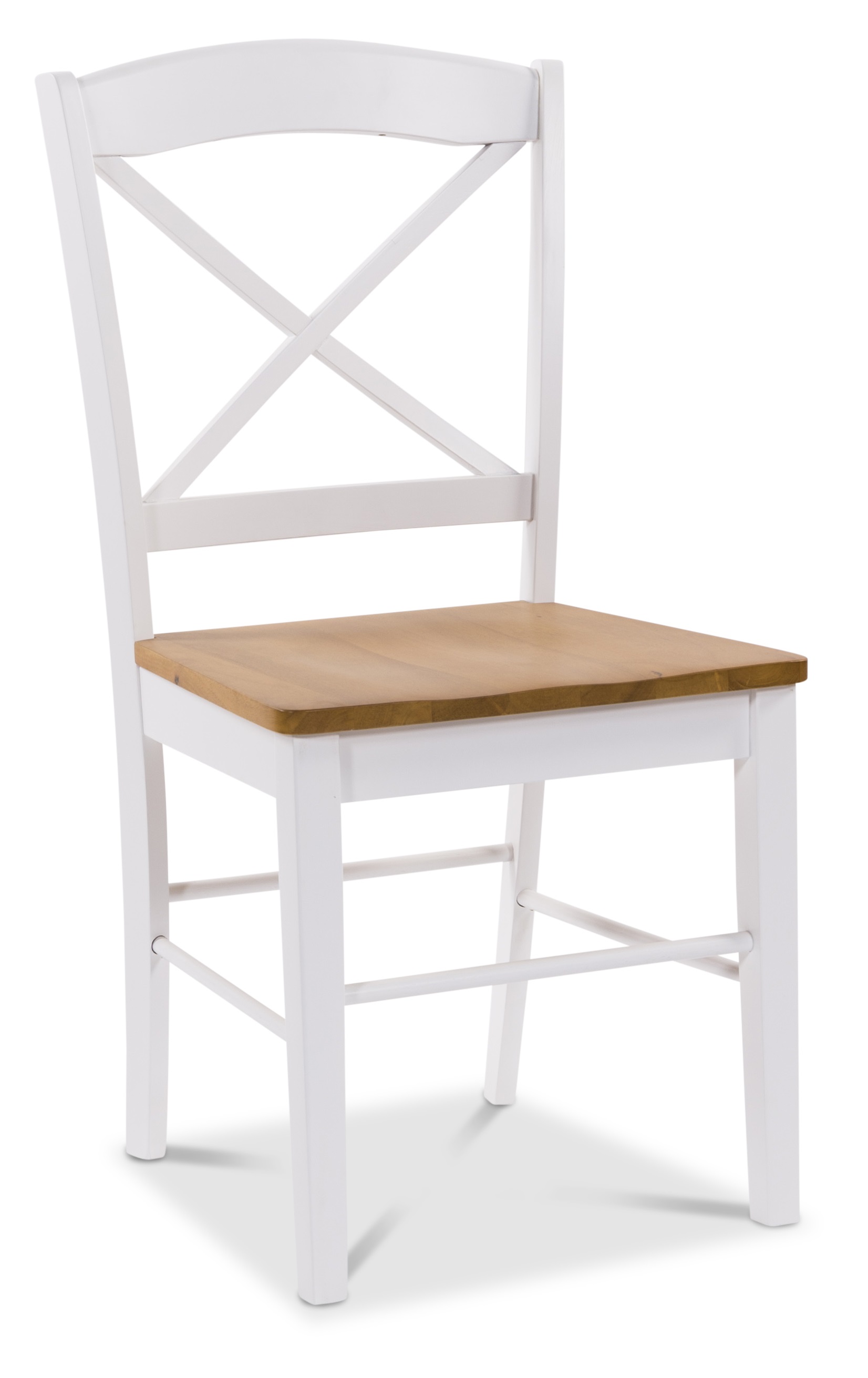 Merida stol med hvit stamme og eikeutførelse på setet, Vakker detalj med krysset i ryggen, klassisk stol som passer inn i de fleste miljøer. Finnes også i svart utførelse.
