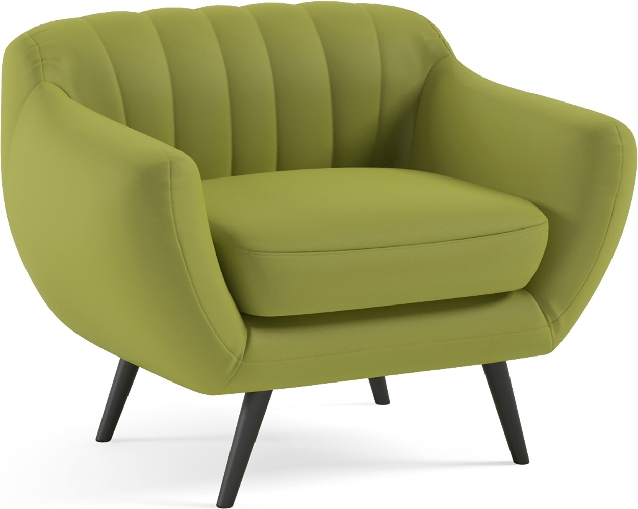 Stilig høykvalitets lenestol i møbelserien Visby. Tilpasses til din stue! Velg mellom et rikt utvalg av møbeltrekk, enten stoff eller kunstskinn og match med treben i ni forskjellige farger. Visby møbelserie inkluderer 2-seters sofa, 3-seters sofa og lenestol.