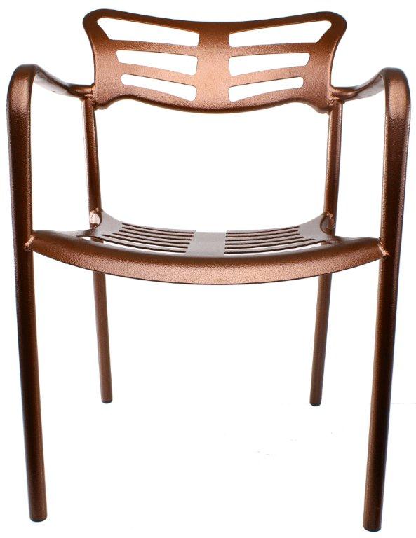 Holdbar og robust kobber caféstol i alumium, motstandsdyktig mot vær og vind samt enkel å flytte. Stolsetet er designet for att vann enkel skal renne vekk, matchende mønster i stolryggen.
