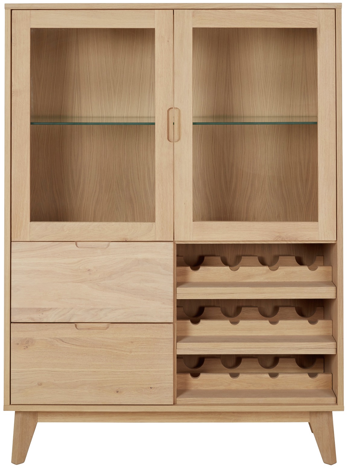 Vår serie Nordli er en velbygget og gjennomtenkt serie av kjøkkenmøbler. Detaljer i massiv eik og eikefiner av høyeste klass. Vitrineskapet har rikelig med oppbevaring som synes gjennom glassdørene. Glasshyller som hyller og oppbevaring til vinflasker. Hele serien er produsert i Europa. Innebyggede spotlights.