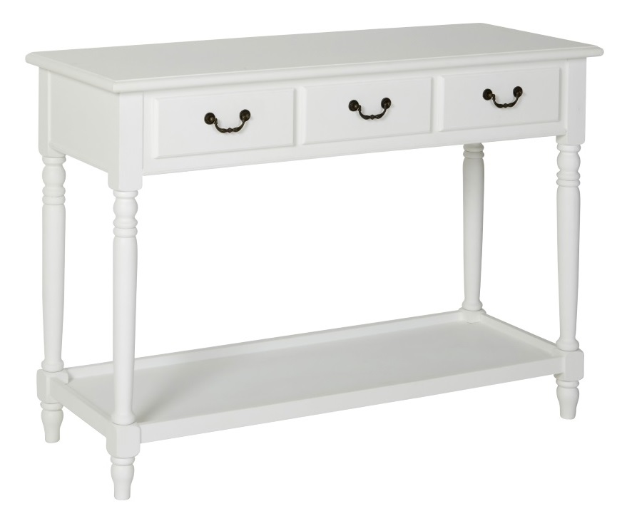 Sofia avlastningsbord 3 skuffer og en praktisk oppbevaringshylle. Sofia-serien består av mange fine oppbevaringsmøbler!