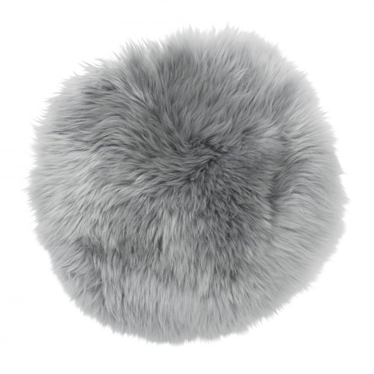 Stolpute i langhåret lysegrå saueskinn fra Australia.