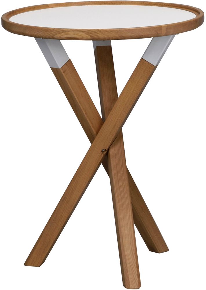 Morris salongbord / lampebord med hvit topp og eikebase.