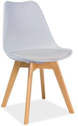 En nydelig spisestuestol med moderne design. Understellet er laget av tre med nydelig bøkefinish og setet er støpt plast med sittepute i kunstskinn.