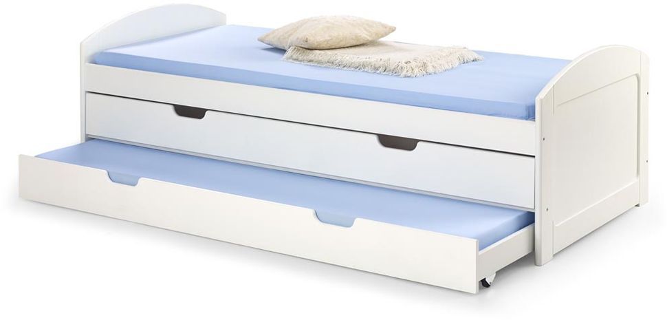 En koselig sengeramme som passer perfekt inn i barnens rom. Produsert hel i hvitlakkert MFP (premium treplate), med et utdragbart rom under som kan brukes som oppbevaringsrom eller som en ekstra seng. Tilpasset madrasser med målet 90x200 cm.