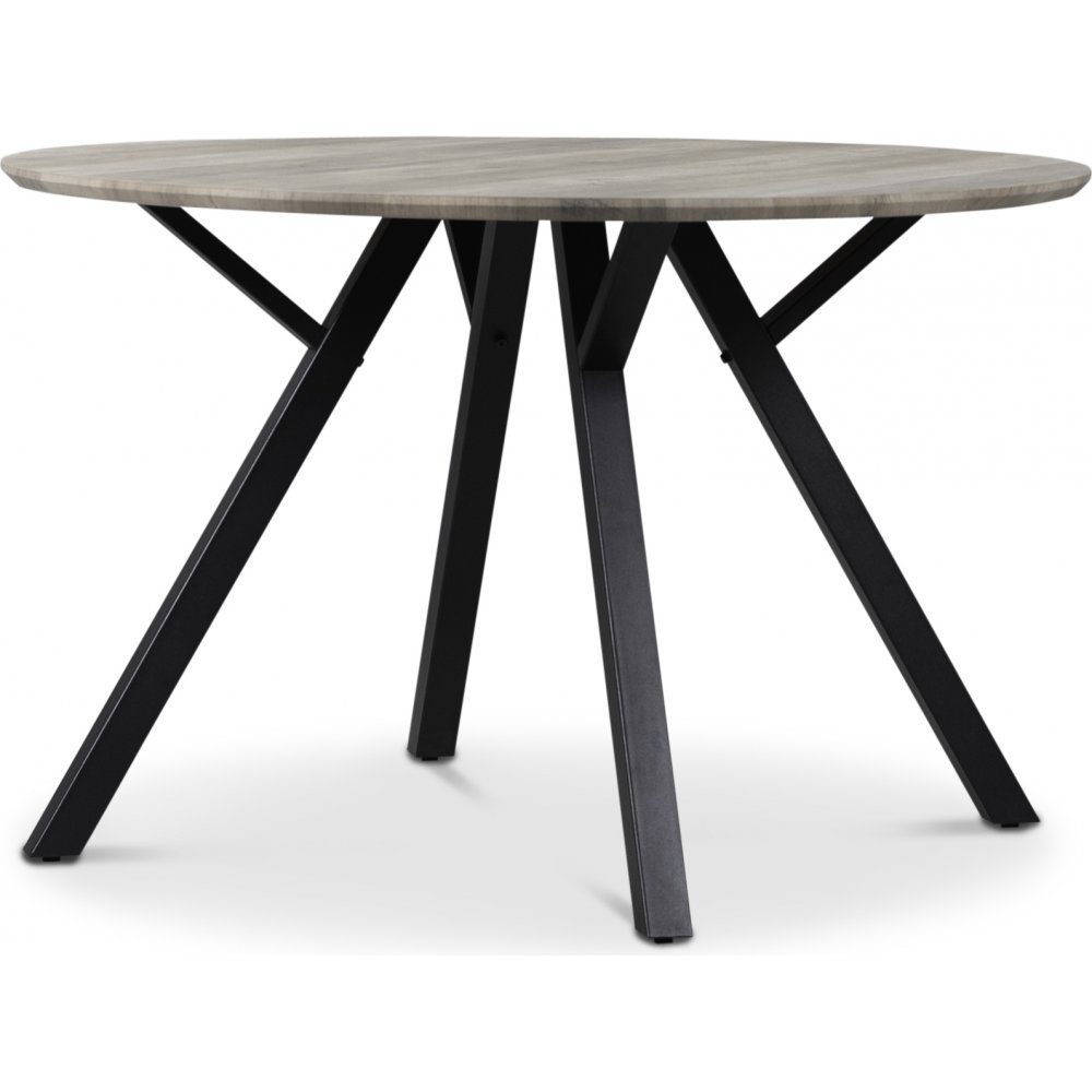 Smokey spisebord er et rimelig spisebord med plass til fire personer. Black metallben og en mdf plate med gråfarget eikfoliering.