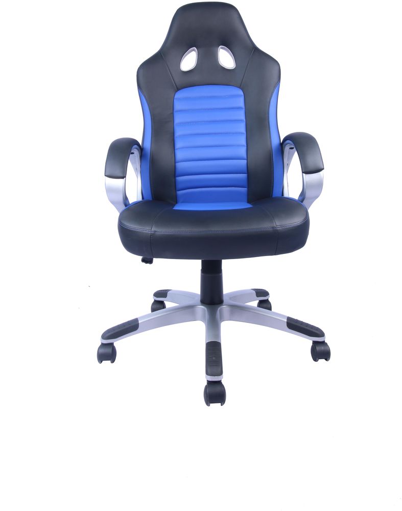 Frekk datastol i blå/svart PU. Justerbar rygg, sete og høyde.