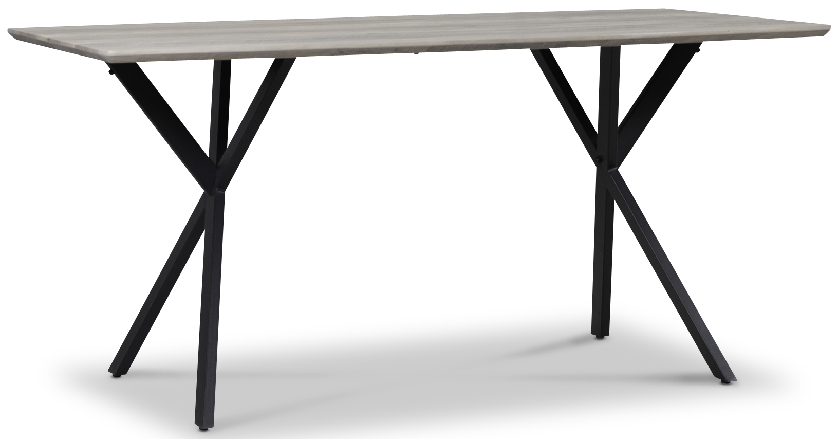 Smokey spisebord er et rimelig spisebord med plass til seks personer. Ben i svart metall og en MDF-plate med gråbeiset eikefoliering.