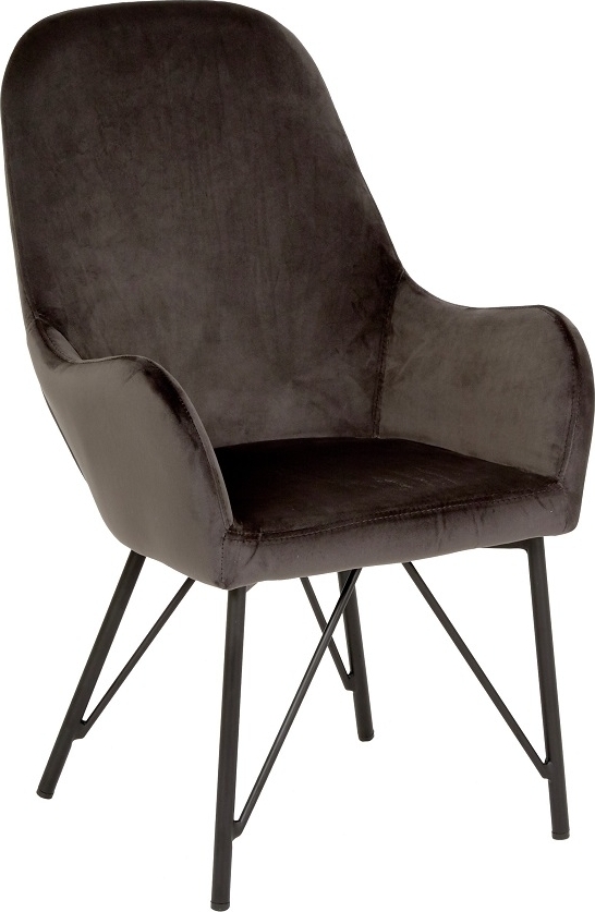 En fin liten barnelenestol i et grått mykt fløyelstoff. Perfekt til barnerommet som en fin detalj. Svarte runde metallben.