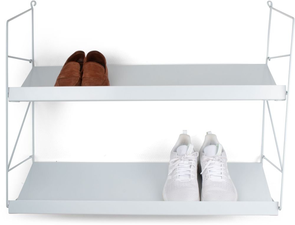 En pen og moderne skohylle i metall med to hylleplan. Monteres lett på vegg i ønsket høyde.