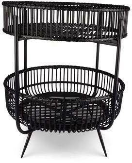 Et pent brikkebord med to bordplan i svart bambus og understell i svart metall.