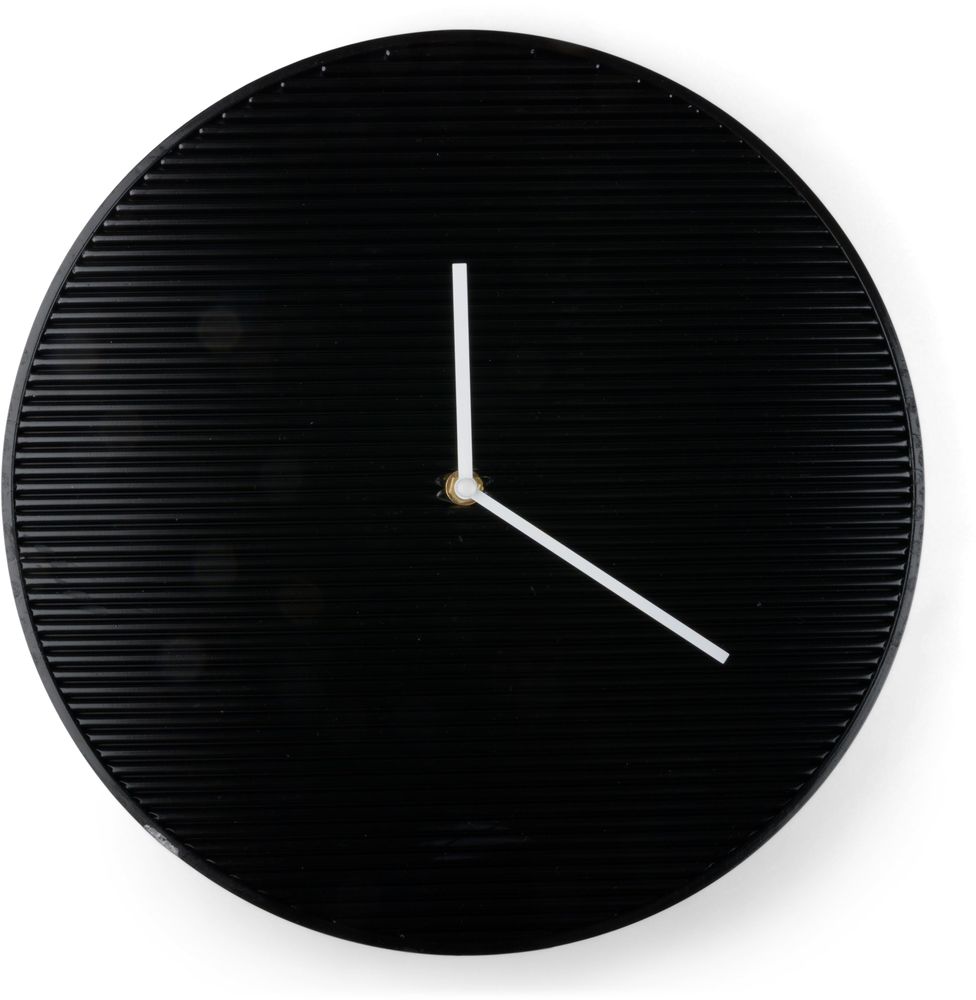 En pen og moderne veggklokke i svart plast.