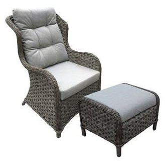 En pen lenestol med fotskammel i moderne design. Stammen er tilvirket av aluminium og er trukket med et behagelig kunstrotting.