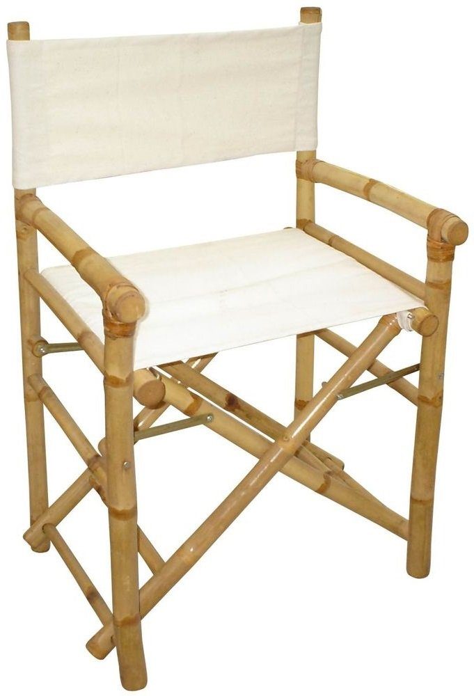 En heftig og pen utestol med en design som etterligner en regissørstol. Stammen er tilvirket av robust bambus og setet samt ryggstøtten er av veldig kraftfullt hvit tøystoff.
