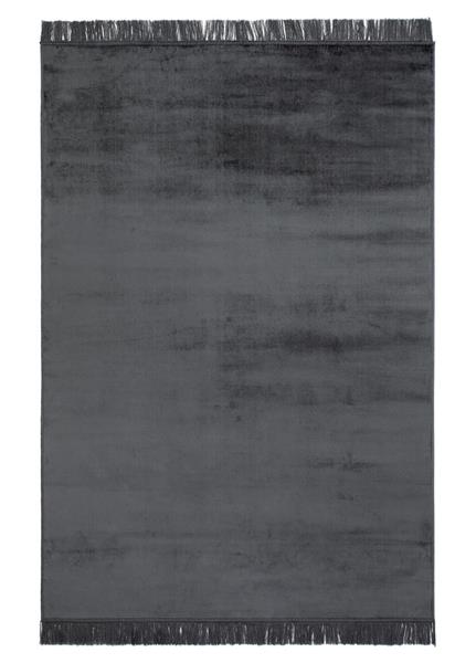 Granada er et ensfarget kunstig silketeppe som passer like bra på stua som på soverommet eller i gangen. Teppet har en antrasittfarget bunnfarge med frynser i matchende farge som gir et elegant inntrykk.