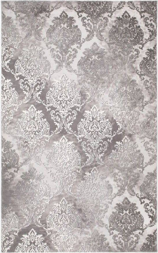Galya Medaljong har en lysegrå bunnfarge og pyntet med et medaljongmønster i grå toner som endrer seg i lysstyrke. Teppet har en lysegrå kantsøm på langsidene og kortsidene er forsterket med lim, som gjør teppet ekstra slitesterkt.