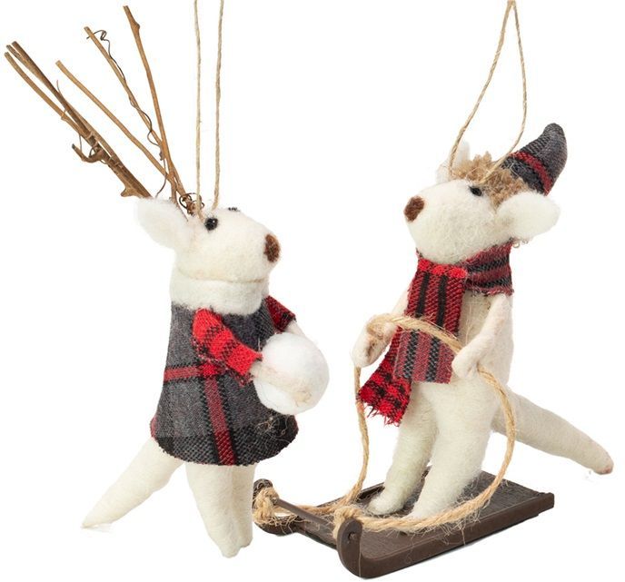Dekorasjon å henge opp på en egnet plass. Reinsdyrene er håndlaget av syntetisk ull.