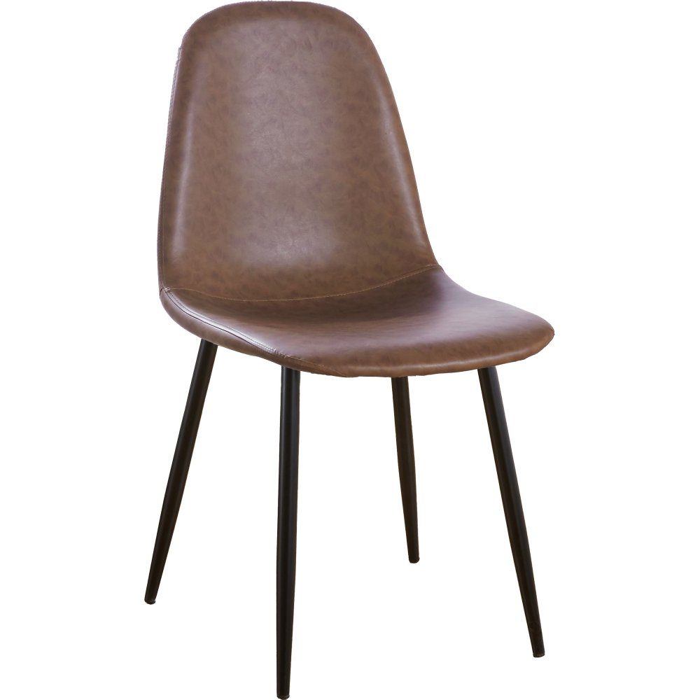 Moderne stol med sete og rygg kledd i vintagebrun PU. Ben av svartmalt metall.