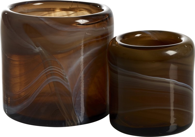 Håndlaget og munnblåst solid lyslykt med tykke kanter helt i glass. Vakker blanding i jordfarger. En naturlig variasjon mellom lyktene i størrelse og farger kan forekomme ettersom de er håndlagde.