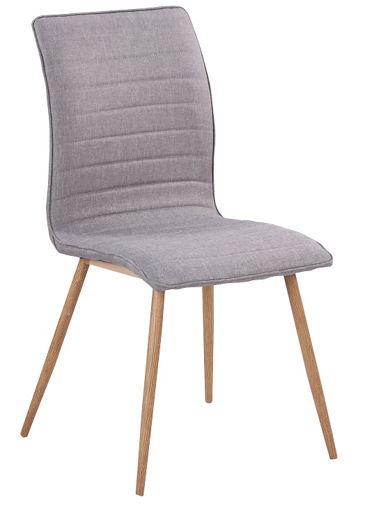 Quick er en ny serie med prisgunstige stoler, spisebord og sofabord! Quick spisestol har et sete kledd i slitesterkt grått stoff. De stabile metallbeina er kledd med med eikemønstret folie.