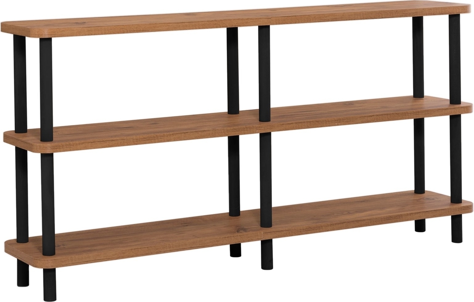 Bokhylle laget av melaminbelagt sponplate og agnbøk.
